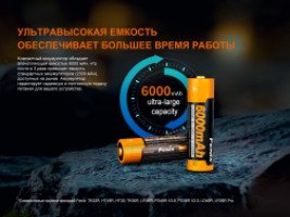 Fenix 21700 ARB-L21-6000 — перезаряжаемый литий-ионный аккумулятор емкостью 6000 мАч. Это высокопроизводительный и безопасный источник питания с форм-фактором 21700, специально разработанный для фонарей Fenix, включая модели TK22R, HT18R, HT32, TK30R, LR36R, PD40R V3.0, PD36R V2.0, LD45R, LR35R Pro.