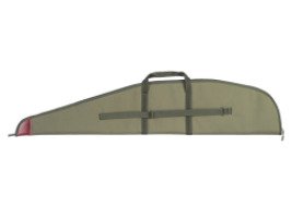 Чехол изготовлен из водонепроницаемой синтетической ткани. 3-х слойная конструкция. Внутри изделия тонкая амортизирующая прокладка. Пенопропилен, из которого изготовлена прокладка футляра, обладает высокой прочностью. Внутри чехла имеется карман для приклада из синтетического материала. Переноска футляра для оружия осуществляется ручкой или на плечевом ремне. Ручка и ремень изготовлены из прочной нейлононовой стропы (Paracord). Рукоятка кофра выдерживает большую нагрузку, так как лента прошита вокруг него. Нос чехла укреплен искусственной кожей (замшей). Изделие прошито прочными лавсановыми нитями, укреплено износостойкой синтетической тесьмой. В передней части есть петля для подвески (хранения).