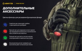 Viking Pro Max совместим со специально разработанной магнитной выносной кнопкой и оригинальными креплениями для подствольного применения. Модель работает не только на комплектном элементе питания, но и на любом стандартном аккумуляторе 21700 Li-Ion, а также, благодаря адаптеру, на аккумуляторе 18650 Li-Ion или на двух литиевых батарейках CR123A. Вариативность элементов питания позволяет значительно повысить автономность.