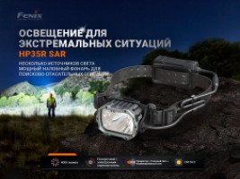 Основной особенностью модели Fenix HP35R Search And Rescue (SAR) является высокая светоотдача и дальность освещения. Прожекторы и светильники заливающего света обеспечивают максимальную светоотдачу 4000 люмен, а прожекторы с высоким индексом цветопередачи — 1200 люмен. Фонарь использует один светодиод нейтрального белого света XHP70 и два светодиода теплого белого света Luminus SST20, срок службы каждого из которых составляет 50 000 часов.