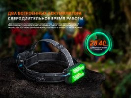 Светодиодный поисковый фонарь питается от батареи емкостью 10 000 мАч. Аккумулятор обеспечивает до 500 часов непрерывного освещения. Батарея находится в затылочной части и снимается с крепления для использования в качестве Powerbank. Также фонарь Fenix HP35R SAR оснащен следующими функциями: режимы сохранения ночного видения, интеллектуальная функция понижения яркости для предотвращения перегрева, а также поворотный и электронный переключатели для удобного управления.