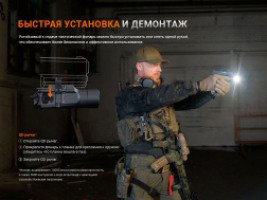 Fenix GL19R V2.0 — надежный боевой фонарь, который подходит для крепления к оружию и обладает устойчивостью к отдаче при стрельбе. Благодаря рычагу быстросъемного крепления QD тактический фонарь можно быстро установить и снять буквально одной рукой. В комплект поставки входят планки Пикатинни и Glock, которые делают GL19R V2.0 подходящим для широкого спектра полноразмерных и компактных пистолетов.
