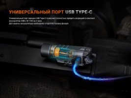 Для работы тактического фонаря GL19R V2.0 используется входящий в комплект аккумулятор ARB-L18-1100. Скрытый универсальный порт Type-C позволяет зарядить прибор за 2 часа. Уровень заряда аккумулятора можно определить с помощью индикатора, который загорается на 3 секунды каждый раз при включении света.