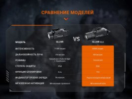 - комплектация — фонарь GL19R V2.0, аккумулятор ARB-L18-1100, кабель USB Type-C, планка Пикатинни, запасная пылезащитная крышка, пара запасных переключателей х2, запасное уплотнительное кольцо, шестигранный ключ, руководство пользователя, гарантийный талон;