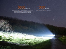 - Burst — 3600 люменов — 330 метров — 3 часа 45 минут — 27300 кандел;