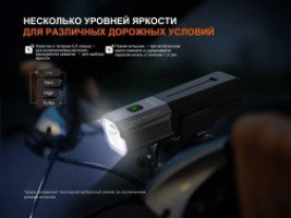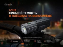 Велофара Fenix BC22R, аккумулятор ARB-L18-3400, крепление для руля, крепление адаптера, кабель USB Type-C, запасное уплотнительное кольцо, руководство пользователя, гарантийный талон