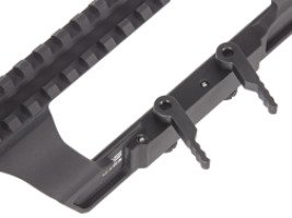 Кронштейн GTS Q.123 предназначен для установки на любую боковую планку шириной 14 мм и для использования с крышкой ствольной коробки без планки Пикатинни. Конструкция имеет торцевой упор и стальной прижим.