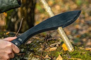 Сам клинок выполнен из стали марки 5CR15, отличающейся хорошей прочностью и стойкостью к динамическим нагрузкам и был закалён до уровня 54 HRC. Таким образом, представленное мачете долго остается острым и не гнётся или ломается при интенсивной эксплуатации.