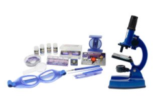 Отличный подарок для ребёнка, желающего погрузиться в увлекательный мир микробиологии. Микроскоп располагает осветителем с двойным действием – когда он повёрнут зеркалом вверх, освещение происходит путём солнечного света. Один поворот, и вот у вас уже освещение от лампы, встроенной в другую сторону осветителя (батарейки в комплект не входят). Это может быть полезно при пасмурной погоде или при отсутствии достаточного освещения в комнате. В комплекте к микроскопу идёт два предметных стекла с уже заранее подготовленным препаратом, и целых 10 предметных стёкол для приготовления своих микропрепаратов, с чистыми стикерами для маркировки. Прямо как в настоящей лаборатории!