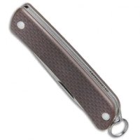 Ruike S11 привлекает внимание своими скромными габаритами. Такой нож уж точно не будет тяжело носить в кармане. Кроме того, в его конструкции предусмотрено стальное кольцо для ношения в роли брелка. К нему также можно прикрепить темляк. Вес данной модели равен лишь 30 грамм. А длина этого ножа в сложенном виде составляет 71 мм. Нож располагает остро заточенным и гладко отполированным лезвием длиною 53 мм и толщиною 3 мм. Его режущая кромка по всей длине остается ровной. Форма клинка достаточно широко распространенная – Drop point. Чтобы открыть этот нож, клинок следует поддеть ногтем за специально оставленную для таких целей насечку. Складывается он без особого труда, поскольку лезвие фиксируется за счет трения при помощи конструкции Slip joint. Но несмотря на отсутствие жесткой фиксации, работать с Ruike S11 безопасно и этот нож в состоянии выдержать приличные нагрузки.