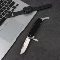 Ruike L21 – это один из складных ножей молодого, но уже хорошо известного бренда Ruike. Он адресован всем активным людям, которые часто выезжают на природу для отдыха или занятий спортом. Главным преимуществом данной модели является компактность, которая совершенно не снижает практичность ножа. Ruike L21 наделен 12 функциями, которые детально описаны в инструкции, составленной производителями. Но все же, его главным инструментом является именно нож. Длина лезвия складного ножа составляет 85 мм. Оно имеет форму drop-point – универсальную разновидность, которая позволяет одинаково легко резать ножом и колоть. К тому же, заточено лезвие тоже универсальным способом – ровно по всей его длине. Толщина клинка Ruike L21 составляет 3 мм. Нож сделан из стали 12С27, которая относится к числу нержавеющих сплавов. Этот тщательно сбалансированный металл характеризуется большой твердостью (до 59 HRC), что позволяет ножам долго оставаться острыми даже при интенсивном использовании. Из такого же металла сделаны и все другие инструменты данной модели. Из спинки рукоятки достается штопор, а параллельно ножу размещен многофункциональный инструмент с функциями плоской отвертки, открывалки для бутылок, приспособлениями для зачистки проводов разного диаметра. Как и лезвие ножа, этот инструмент достается при помощи насечки на стальной пластине, которую можно поддеть ногтем. Помимо этого, с обратно1 стороны рукоятки достается инструмент для разрезания ремней и строп, который также может послужить маленькой прямой отверткой. В торцевую часть рукоятки встроено небольшое поворотное кольцо, в которое можно продеть темляк. Кроме того, здесь же находится стеклобой. Рядом с последними двумя инструментами хранится пинцет, который плотно размещается внутри рукоятки, однако может использоваться как совершенно самостоятельный инструмент.