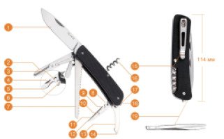 - размер сложенного многофункционального ножа – 114 мм;