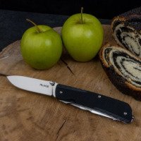 Длина клинка складного ножа Ruike LD21 равна 85 мм. Лезвие сделано очень прочным, а толщина 3 мм и не затрудняет реза различных материалов, как это могло бы быть в более толстых охотничьих ножах. Клинок получил универсальную форму Drop point, благодаря чему лезвием удобно и резать, и колоть. Заточен нож тоже наиболее распространенным способом – гладко. Лезвие аккуратно отполировано до зеркального состояния. Чтобы открыть нож, следует воспользоваться шпеньком, расположенным у самой рукоятки. А в открытом положении он держится за счет встроенного замка Liner lock. Этот механизм дает жесткую фиксацию и полностью исключает случайное складывание лезвия во время его использования. К тому же, такой замок требует самого простого ухода, чтобы оставаться рабочим в течение многих лет. Чтобы вновь закрыть Ruike LD21, нужно отодвинуть в сторону стальную пластину, которая упирается в пятку ножевого клинка.