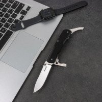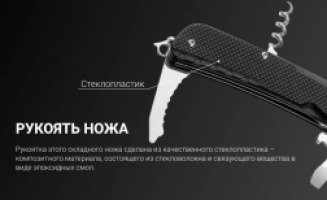 Рукоятка ножа – не менее важная часть, чем рабочие инструменты. В модели Ruike LD21 она сделана удобной и долговечной. Для ее оформления используется две композитные стеклопластиковый накладки. Материал для них также известен под названием G10. Он внешне и по весу напоминает пластик: так же легко обрабатывается, окрашивается, не промокает в воде. Но прочность этого композита сопоставима со сталью, а потому рукоятка будут действительно долговечной. А для удобства ношения ножа при себе, на его ручке прикручена прижимная клипса из той же стали, что и инструменты.