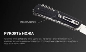 Модель Ruike LD51 получила весь набор инструментов, возможных для этой серии, поэтому будет полезна для выполнения практически любого ремонта, а также в целом ряде других ситуаций. Рядом с ножом размещаются маленькие плоскогубцы, уменьшенная версия ножниц, пила по дереву, а также открывалка для бутылок, отвертка с прямым шлицем шириною 6,5 мм и приспособления для зачистки проводов. С противоположной стороны рукоятки ножа открываются шило с возможностью продеть в него нитку и еще парой приспособлений для снятия изоляции, крестовая отвертка небольшого размера, прямая отвертка шириною 3 мм, резак для ремней. С этой же стороны, но уже в самом торце ручки размещается стеклобой, кольцо, которому можно подвесить цепочку или любой темляк. Кроме того, из корпуса полностью достаются щипцы, которые, тем не менее, плотно сидят внутри рукоятки и не выпадают из нее. Но верхней части рукоятки расположен штопор. Ну а на одной из широких сторон прикручена прижимная клипса.