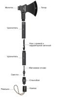 Топор Adimanti AXE-003 является мультифункциональным изделием, состоящим из нескольких полезных инструментов: