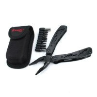 Модель выполнена в элегантном черном цвете. Геометрические вырезы на рукоятках делают инструмент визуально привлекательным, а также снижают его вес. Это делает Мультитул G104 удобнее для длительной работы. Рифление на боковых поверхностях улучшает хват, не давая мультитулу выскользнуть из руки.