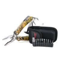 Особенность Ganzo 2016-P — пластиковые накладки на рукоятках с камуфляжным принтом. Кроме интересного окраса мультитул получает практичное свойство скрытого ношения, что удобно во время охоты или выполнения тактических операций. Рукоятки плотно лежат в ладони, а насечки на боковых частях предотвращают скольжение мультитула даже при работе мокрыми руками.