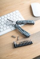 Основной инструмент мультитула — подпружиненные плоскогубцы. Они позволяют надежно удерживать мелкие детали, перекусывать проволоку и работать с предметами различной формы, такими как гайки, небольшие трубки или металлические пластины. Благодаря пружинному механизму плоскогубцы автоматически возвращаются в исходное положение после каждого сжатия. Рука меньше устает, а рутинная и долгая работа становится комфортнее.