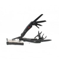 Модель выполнена в черном цвете. Фигурные вырезы на рукоятках снижают вес мультитула, что делает его удобнее для длительного использования. Насечки на торцах рукояток обеспечивают надежный хват, что особенно важно при работе мокрыми руками.