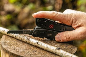 Одна из ключевых особенностей мультитула Ganzo G301B — возможность извлечения всех лезвий одной рукой с помощью удобного шпенька. После открытия инструменты надежно фиксируются благодаря встроенному замку.