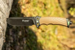 - поставляется в комплекте с ножнами со встроенным огнивом, точилкой и стропорезом;