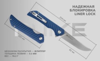 Для фиксации лезвия используется замок Liner Lock. Конструкция надежно и безопасно фиксирует лезвие P122-ME даже во время интенсивного использования. Для раскрытия в механизме складного ножа Ruike предусмотрен флиппер. В сочетании с замком Liner Lock он позволяет открывать и закрывать нож одной рукой.