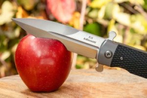 Клинок имеет форму Spear-Point с фальшлезвием со стороны обуха. С такой копьевидной формой легко выполнять колющую работу, когда нужно что-то подковырнуть, наколоть или тонко надрезать. С базовым задачами клинок эффективно справляется за счет своей длины в 94 миллиметра и толщины, составляющей 3.5 миллиметра.