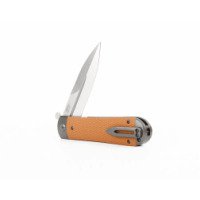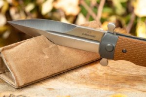 Клинок имеет форму Spear-Point с фальшлезвием со стороны обуха. С такой копьевидной формой легко выполнять колющую работу, когда нужно что-то подковырнуть, наколоть или тонко надрезать. С базовым задачами клинок эффективно справляется за счет своей длины в 94 миллиметра и толщины, составляющей 3.5 миллиметра.