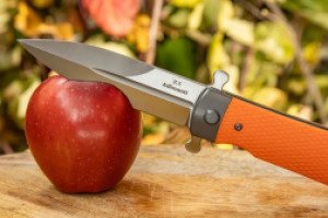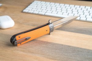 Клинок имеет форму Spear-Point с фальшлезвием со стороны обуха. С такой копьевидной формой легко выполнять колющую работу, когда нужно что-то подковырнуть, наколоть или тонко надрезать. С базовым задачами клинок эффективно справляется за счет своей длины в 94 миллиметра и толщины, составляющей 3.5 миллиметра.