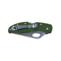 Сама рукоятка сделана из прочного синтетического материала — стеклонаполненного нейлона. Накладки прикручены пятью болтами, а клипса ножа — еще тремя. Клипса может размещаться в четырех положениях. Цвет рукоятки покупатель может выбрать из нескольких доступных вариантов: черный, оранжевый, розовый и голубой.
