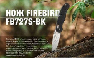 Торговая марка Firebird известна, пожалуй, каждому, кто в восторге от миниатюрных и практичных EDC-моделей. Эти стильные и доступные ножи быстро завоевали благосклонность потребителей. Китайский производитель Ganzo знает, чем увлечь искушенных пользователей. Виртуозно воплощая свои идеи, ножеманам они предлагают весьма недорогие, надежные, аккуратные и продуманные модели. Одна из таких – новинка Firebird F727S.