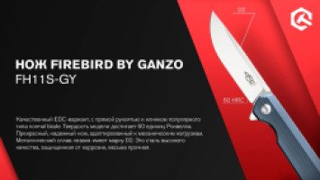 Компания Firebird представила еще одну универсальную модель складного ножа, ориентированную на туристов и любителей других видов активного досуга. Она обладает неплохими параметрами, которые подойдут рыбакам, охотникам, рабочим, которым необходим дополнительный инструмент. При этом, дизайн для ножа выбран лаконичный и стильный, что также является его преимуществом.