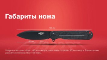 Размеры Firebird Ganzo FH922PT-BK D2 Steel Black: длина общая достигает 196 миллиметров, длина лезвия составляет 86 миллиметров. Толщина клинка равна трём с половиной миллиметрам. Весит 109 грамм.