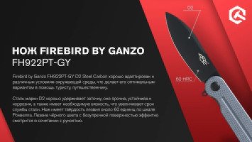 Нож Ganzo FH922PT являет собой практичный EDC-инструмент в помощь активным людям. Firebird by Ganzo FH922PT-GY D2 Steel Grey представлен в нескольких вариантах цвета: оранжевом, зелёно-голубом, сером, «карбон» и чёрном. Компактная модель обладает клинком формы drop point, одинаково эффективным как при колющих, так и режущих, движениях. Лезвие эффективно проявляет себя в туризме, поэтому ножи такого типа распространены в туристической деятельности.