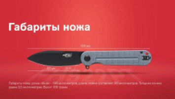 Размеры Firebird by Ganzo FH922PT-GY D2 Steel Grey: длина общая достигает 196 миллиметров, длина лезвия составляет 86 миллиметров. Толщина клинка равна трём с половиной миллиметрам. Весит 109 грамм.