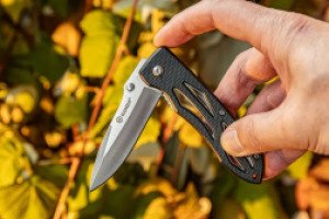 Лезвие модели выполнено из нержавеющей стали 440 (имеет высокую стойкость к коррозии и отличную твердость, хорошо держит заточку, при этом относительно дешева в производстве).