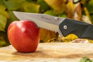 Модель относится к средним по размеру, длина ножа с открытым лезвием – 197 мм, а в сложенном виде – 117 мм. Модель Ganzo G617 имеет клинок полусеррейторного типа, т.е. часть клинка —это лезвие с гладкой заточкой, а часть - так называемое серрейторное лезвие, в котором есть пилообразные зазубрины по режущей кромке.