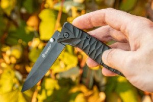 Рукоятка ножа сделана из распространенного материала – высокотехнологичного, термостойкого и нетоксичного ABS-пластика, достоинствами которого являются почти нулевая подверженность воздействию агрессивных веществ и термостойкость. Рукоятка по бокам имеет рифленые пластины, которые позволяют удобно расположить нож в руке и не испытывать дискомфорта при любых погодных условиях. Во время транспортировки нож можно разместить на ремне, используя для этого специально предусмотренную производителем металлическую клипсу.