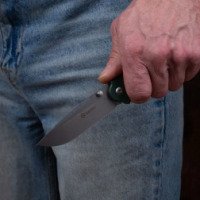 Рукоять модели изготовлена с применением стеклотекстолита G10. Высокопрочный материал гарантирует удобство при использовании ножа и его устойчивость к разного рода внешним воздействиям. Рукоять эргономичной формы, комфортная при захвате. Поверхность рукоятки текстурированная, благодаря чему нож надёжно удерживается в руке при любых условиях. Металлическая клипса позволяет фиксировать изделие, и носить его на кармане, на поясе либо прикреплять к сумке. Предусмотрено отверстие для темляка.