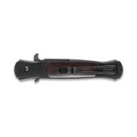 Рукоятка модели G707B сделана из нержавеющей стали и имеет деревянные вставки. На рукоятке располагается специальная прижимная клипса, за которую можно крепить нож к ремню или другой экипировке. Это обеспечивает удобство ношения и быстроту доступа к инструменту. Эргономичная форма рукоятки обеспечивает удобный и надежный хват, что важно при длительном использовании.