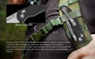 Нож Ganzo G7531 изготовлен таким образом, чтобы удовлетворить запросы сразу большого числа покупателей. Он подходит для всех видов туризма и других разновидностей активности на природе. Его так же успешно можно использовать и в городе. Данная модель сделана складной, что существенно облегчает ее перевозку. Более того, встроенный в нож замок, надежно блокирует ход лезвия по оси, чтобы оно не могло перемещаться самостоятельно при использовании ножа. В данном случае, это замок Axis, позволяющий легко открывать нож в случае надобности одной рукой.