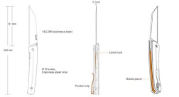Представленный нож открывается с помощью односторонней клипсы (ориентирована под использование правой рукой). В открытом виде фиксация клинка осуществляется с помощью замка Liner-lock.