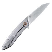 Лезвие ножа изготовлено из нержавеющей шведской стали Sandvik 14C28N. Эта сталь отличается прочностью, легкостью в заточке и долго сохраняет остроту режущей кромки. Криогенная обработка оснащает сталь твердостью 57-59 HRC. Рукоять выкована из стали 13Cr14N, что само по себе является идеальным сочетанием стиля и прочности. Форма клинка Reverse Tanto увеличивает режущие свойства ножа, что позволяет владельцу пользоваться ножом во время грубой работы с сильным нажимом.