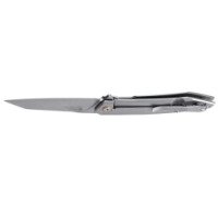 Стальная рукоятка не выскальзывает из ладони и устойчива к возникновению коррозии. Также складной нож проходит пескоструйную обработку, что добавляет лезвию шероховатую поверхность, маскирующую отпечатки пальцев и внешние повреждения.