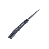 Клинок длиной 73 мм выполнен из стали 140CR с твёрдостью 61–63 HRC, благодаря ламинированию двумя слоями других нержавеющих сталей, лезвие обладает характеристиками, сравнимыми со сталью S35VN. Форма клинка — Wharncliffe — подходит для точных резов и контролируемых работ в любых условиях. Черное финишное покрытие PVD придаёт клинку тактический внешний вид и повышает его стойкость к коррозии и износу.