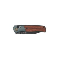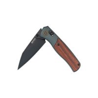 Рукоять выполнена из алюминия 6063 с зелёным анодированием и вставками из розового дерева. Нож с рукоятью из розового дерева удобно лежит в руке благодаря эргономичной форме и глубокой карманной клипсе, которую можно переставить под левую или правую руку.