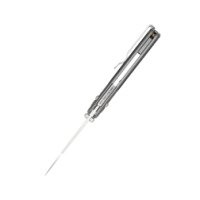 Клинок длиной 81 мм выполнен из нержавеющей стали Sandvik 14C28N с твёрдостью 57–59 HRC, что обеспечивает оптимальное удержание кромки и стойкость к коррозии. Форма клинка — обратный танто (Wharncliffe) — подходит для точных резов. Толщина обуха 2,6 мм сохраняет прочность, а сатинированный финиш клинка снижает отражающую бликовую способность и повышает стойкость ножа к коррозии и износу.