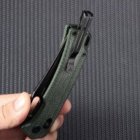 Форма клинка Clip Point обеспечивает отличные проникающие характеристики и удобство в точных режущих работах. Рукоять изготовлена из микарты — материала, который ценится за прочность, влагостойкость и комфортное сцепление с рукой. Под накладками расположены внутренние лайнеры из нержавеющей стали 420, усиливающие общую жесткость конструкции без увеличения веса.
