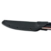 Рукоять черного цвета с красной полосой по внутренней части накладок придает ножу стильный и аутентичный внешний вид. Есть отверстие для темляка.